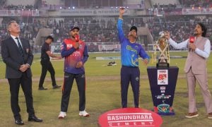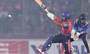 দ্বাদশ বিপিএলের ফাইনালে আগে ব্যাটিং করে ১৭৫ রান তুলেছিল রাজশাহী ওয়ারিয়র্স। মিরপুরের পিচ যেমন আচরণ করছে তাতে বুঝাই যাচ্ছিল এই রান তাড়া করা সহজ কাজ নয়। কঠিন কাজটা করতে পারেনি চট্টগ্রাম রয়্যালস। বিপিএলের ফাইনালে ৬৩ রানে হেরেছে চট্টগ্রাম। শুরু থেকে নিয়মিত বিরতিতে উইকেট হারিয়ে চট্টগ্রাম শেষ পর্যন্ত থেমেছে ১১১ রানে। যাতে ৬৩ রানের জয় নিয়ে […]