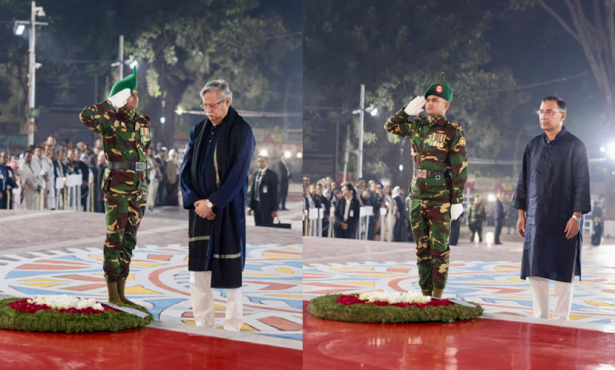 ঢাকা: অমর একুশে ও আন্তর্জাতিক মাতৃভাষা দিবস উপলক্ষ্যে ঐতিহাসিক ভাষা আন্দোলনের শহিদদের প্রতি গভীর শ্রদ্ধা নিবেদন করেছেন রাষ্ট্রপতি মো. সাহাবুদ্দিন ও প্রধানমন্ত্রী তারেক রহমান। শুক্রবার রাত ১২টা ১ মিনিটে রাষ্ট্রপ্রধান ও সরকারপ্রধান উভয়ে কেন্দ্রীয় শহিদ মিনারে পুষ্পস্তবক অর্পণ করে শ্রদ্ধা নিবেদন করেন। ঘড়ির কাঁটা রাত ১২টা বাজার সঙ্গে সঙ্গেই রাষ্ট্রপতি বেদীর দিকে এগিয়ে যান। তারপর […]