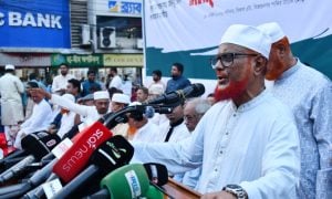 ঢাকা: গাজীপুরের শ্রীপুরে দিনদুপুরে অপহৃত মাদরাসা ছাত্রীকে দ্রুত উদ্ধার করার দাবি জানিয়েছেন বিরোধী দলীয় নেতা ও জামায়াতের আমির ডা. শফিকুর রহমান। শুক্রবার (১৭ এপ্রিল) রাতে নিজের ভেরিফাইড ফেসবুক পেজে তিনি লেখেন, গাজীপুরের শ্রীপুরে দিনদুপুরে একটি মাদরাসা ছাত্রী ও মসজিদের ইমামের মেয়েকে অপহরণ, পরিবারের সদস্যদের ওপর বর্বরোচিত হামলা এবং লুটপাটের ঘটনার নিন্দা জানানোর ভাষা আমার জানা […]