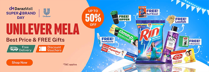 বিশ্বখ্যাত পণ্যের সমাহার নিয়ে দারাজে শুরু হয়েছে ইউনিলিভার সুপার ব্র্যান্ড ডে। অনলাইন কেনাকাটাকে সহজ ও আনন্দদায়ক করতে এই “ইউনিলিভার মেলা” চলবে ২৮ থেকে ৩১ অক্টোবর পর্যন্ত। বাজেট ফ্রেন্ডলি দাম আর আকর্ষণীয় অফারে ক্রেতারা পাবেন সেরা শপিং অভিজ্ঞতা। এই ক্যাম্পেইনে ইউনিলিভারের জনপ্রিয় প্রিমিয়াম পণ্যে রয়েছে-