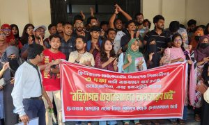রাজশাহী: রাজশাহী বিশ্ববিদ্যালয়ের চিকিৎসা মনোবিজ্ঞান বিভাগে শিক্ষার্থীদের শাটডাউন আন্দোলন তৃতীয় দিনে নতুন মাত্রা পেয়েছে। বিভাগে বৈষম্যমূলক নিয়োগ বিজ্ঞপ্তি সংশোধনসহ তিন দফা দাবি আদায় না হওয়ায় আন্দোলনকারীরা এবার বিভাগীয় চেয়ারম্যানের পদত্যাগের […]