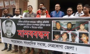 নেত্রকোনা: গাজীপুরে দৈনিক প্রতিদিনের কাগজ পত্রিকার প্রতিনিধি আসাদুজ্জামান তুহিনকে কুপিয়ে হত্যার প্রতিবাদে ও জড়িতদের দ্রুত বিচারের দাবিতে নেত্রকোনায় স্থানীয় সাংবাদিকদের এক মানববন্ধন অনুষ্ঠিত হয়েছে। রোববার (১০ আগস্ট) দুপুরে নেত্রকোনা জেলা […]