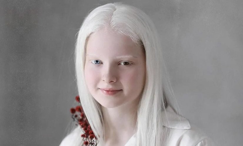 এই ব্যতিক্রমী সৌন্দর্যের পেছনে আছে দুটি বিরল জিনগত অবস্থা— অ্যালবিনিজম এবং হেটারোক্রোমিয়া।