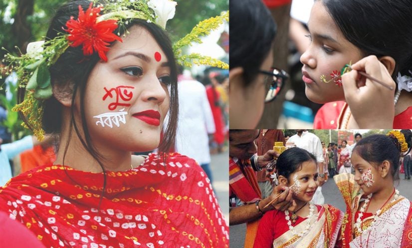 ভোরের আলো ফুটতেই শহরের বাতাসে লাল-সাদা রঙের উচ্ছ্বাস। পান্তা-ইলিশ, মঙ্গল শোভাযাত্রা, রবীন্দ্রসঙ্গীত সবকিছুর মাঝেও এক নীরব অথচ গভীর শিল্পচর্চা চোখে পড়ে: নারীদের গালে আঁকা আলপনা। ছোট্ট তুলি, সামান্য রঙ, আর এক চিলতে মুখ, এই তিনেই যেন ফুটে ওঠে বাঙালির হাজার বছরের সংস্কৃতি।