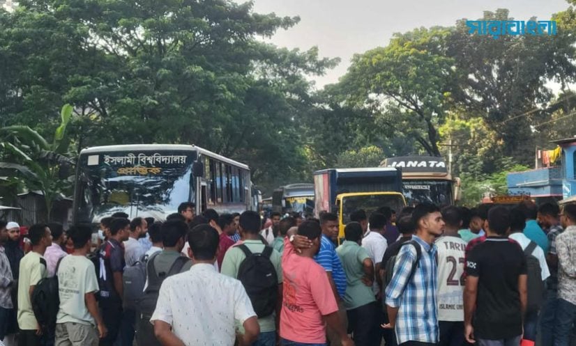 ইবি: কুষ্টিয়া থেকে ঝিনাইদহ পর্যন্ত মহাসড়ক সংস্কারের দাবিতে কুষ্টিয়া-খুলনা মহাসড়ক ‘ব্লকেড’ কর্মসূচি পালন করেছে ইসলামী বিশ্ববিদ্যালয়ের (ইবি) শিক্ষার্থীরা।