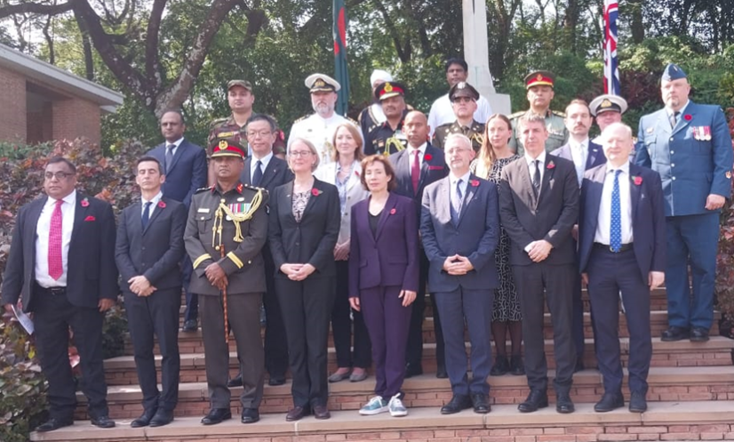 শনিবার (৮ নভেম্বর) সকাল সাড়ে ১০টায় কমনওয়েলথ স্মরণ দিবস উপলক্ষে অনুষ্ঠিত এই আনুষ্ঠানিকতায় নেতৃত্ব দেন বাংলাদেশে নিযুক্ত ব্রিটিশ হাইকমিশনার সারাহ কুক। তার সঙ্গে ছিলেন যুক্তরাষ্ট্রের রাষ্ট্রদূত ট্রেসি অ্যান জ্যাকবসন, কানাডার হাইকমিশনার অর্জিত সিং, অস্ট্রেলিয়ার হাইকমিশনার সুজান রাইল, জাপানের রাষ্ট্রদূত সাইদা শিনইচি, সুইডেনের রাষ্ট্রদূত নিকোলাস উইকস, ইউরোপীয় ইউনিয়নের রাষ্ট্রদূত মাইকেল মিলার এবং জার্মানির রাষ্ট্রদূত ড. রুডিগার লটজ।
