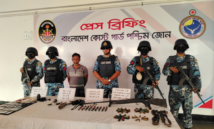 বাগেরহাট: সুন্দরবনে কোস্ট গার্ডের পৃথক অভিযানে অস্ত্র ও গুলিসহ এক ডাকাত ও এক অস্ত্র ব্যবসায়ীকে আটক করা হয়েছে।