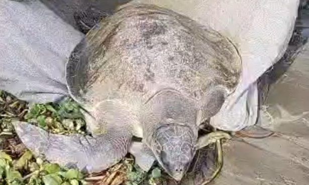 সুনামগঞ্জ: সুনামগঞ্জের দোয়ারাবাজার উপজেলার পাণ্ডারখালে জেলেদের জালে ধরা পড়েছে বিরল এক বয়স্ক কচ্ছপ, স্থানীয় ভাষায় যাকে বলা হয় ‘জলখাসি’। কচ্ছপটির ওজন প্রায় ১১ কেজি ২০০ গ্রাম। বর্তমানে এটি সুনামগঞ্জ শহরের লঞ্চঘাট এলাকায় এক মাছ ব্যবসায়ীর কাছে রাখা আছে।