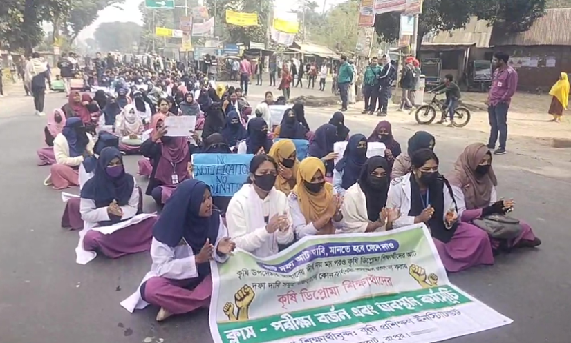 রংপুরে কৃষি ডিপ্লোমা শিক্ষার্থীদের মহাসড়ক অবরোধ ও পরীক্ষা বর্জন
