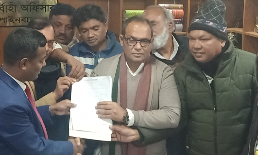 চাঁপাইনবাবগঞ্জ-২ আসনের বিএনপির প্রার্থী মো. আমিনুল ইসলাম সন্ধ্যায় নাচোল উপজেলা নির্বাহী কর্মকর্তা ও সহকারী রিটার্নিং কর্মকর্তা গোলাম রব্বানী সরকারের কাছে মনোনয়নপত্র জমা দেন।