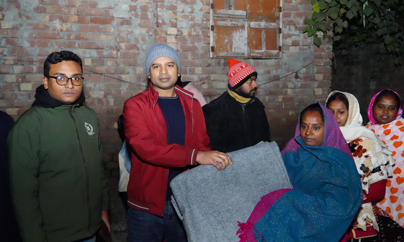 শীতে কম্বল বিতরণ করা হচ্ছে
