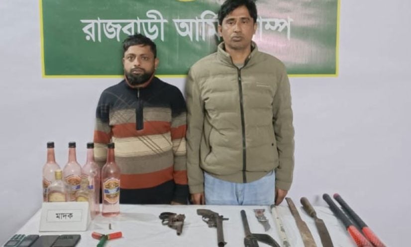 রাজবাড়ী আর্মি ক্যাম্প সূত্রে জানা যায়, সোমবার (৫ জানুয়ারি) রাত ২টা ৩০ মিনিট থেকে ভোর ৫টা ৩০ মিনিট পর্যন্ত রাজবাড়ী সদর থানার বসন্তপুর ইউনিয়নের মুছিদহ ও গাবলা এলাকায় পৃথক দুটি অভিযান চালানো হয়। অভিযানে লিটু খান ও মো. আরিফ খানকে আটক করা হয়।