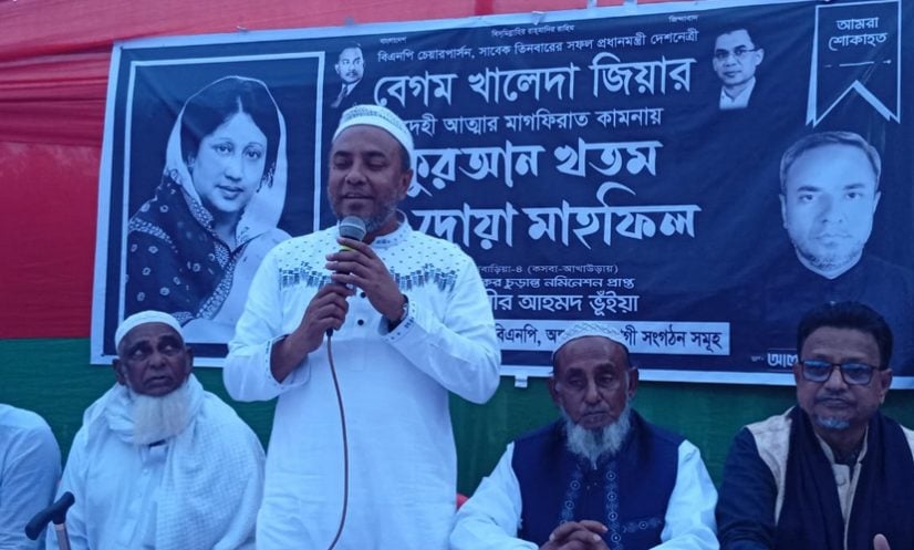 শনিবার(১০ জানুয়ারি) আখাউড়া উপজেলার বনগজ এলাকায় বিএনপি চেয়ারপারসন ও সাবেক প্রধানমন্ত্রী বেগম খালেদা জিয়ার মৃত্যু উপলক্ষ্যে আয়োজিত দোয়া মাহফিলে প্রধান অতিথির বক্তব্যে তিনি এসব কথা বলেন।