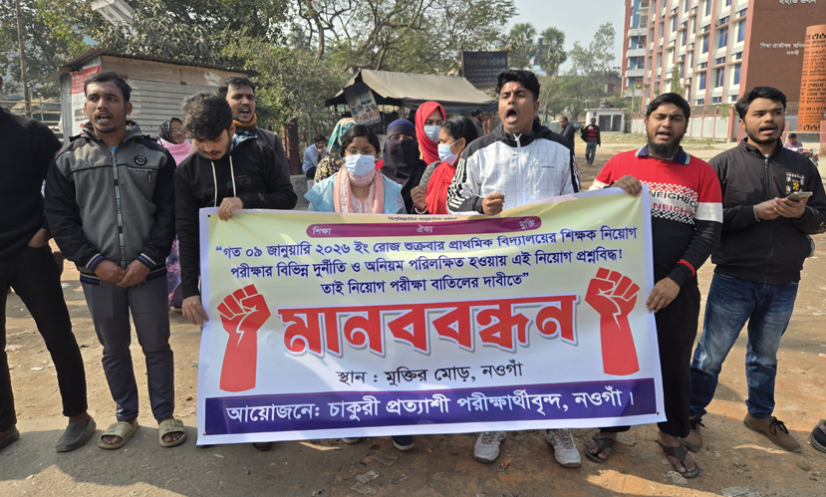 এসময় চাকরি প্রত্যাশী পরীক্ষার্থী তুষার আহমেদের নেতৃত্বে পরীক্ষার্থী আফরোজা খাতুন, দোলেনা খানম ও শম্পাসহ অন্যরা বক্তব্য রাখেন।