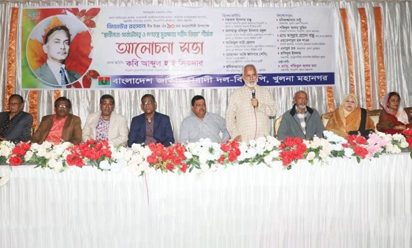 সোমবার (১৯ জানুয়ারি) বিকাল সাড়ে ৩টায় খুলনা প্রেসক্লাব মিলনায়তনে মহান শহিদ রাষ্ট্রপতি জিয়াউর রহমানের ৯০তম জন্মবার্ষিকী উপলক্ষ্যে খুলনা মহানগর বিএনপির উদ্যোগে ‘স্বাধীনতা, সার্বভৌমত্ব ও গণতন্ত্র সুরক্ষায় শহিদ জিয়া’ শীর্ষক আলোচনা সভায় বক্তারা এসব কথা বলেন।
