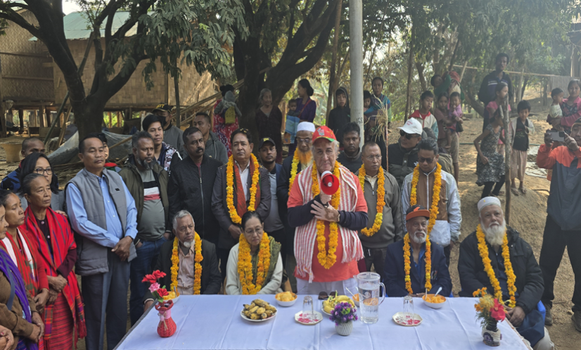 সোমবার (২৬ জানুয়ারি) সকাল ৮টায় দুর্গম পাহাড়ি পথ পেরিয়ে রুমা-রোয়াংছড়ি সীমানাবর্তী খিয়াং জনগোষ্ঠীর খামতাম পাড়া থেকে দিনব্যাপী নির্বাচনি প্রচার শুরু করেন।