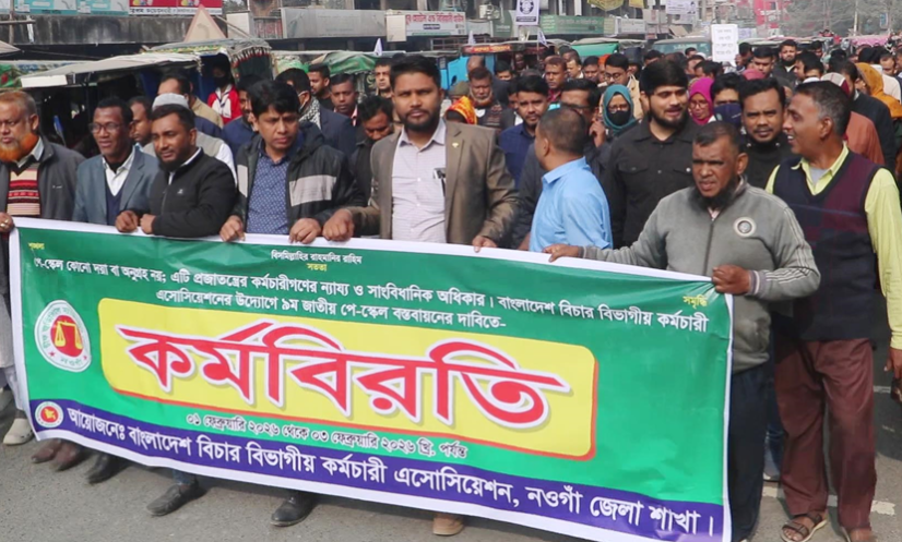 নওগাঁ: নবম পে-স্কেলের গেজেট প্রকাশসহ সাত দফা দাবিতে নওগাঁয় বিক্ষোভ ও কর্মবিরতি পালন করেছেন বিভিন্ন সরকারি দফতরের কর্মচারীরা।