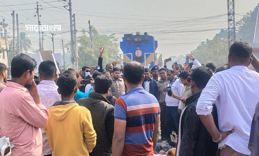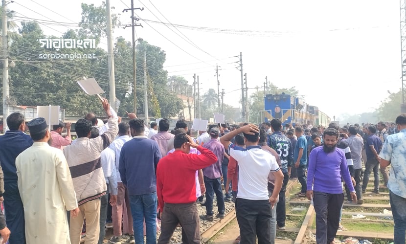 এ সময় সুন্দরবন এক্সপ্রেসের একটি ট্রেন এলে তারা ১৫ মিনিট ট্রেনটি আটকে রেখেই বিক্ষোভ করে। এরপর তারা বিক্ষোভ মিছিল করতে করতে রাজবাড়ী রেলওয়ে স্টেশন আসে। মিছিলে তাদের সঙ্গে যুক্ত হয় বাংলাদেশ রেলওয়ে রানিং স্টাফ ও শ্রমিক কর্মচারী ইউনিয়নের সদস্যরা।