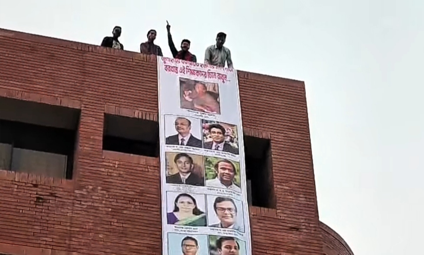 জাবি: জাহাঙ্গীরনগর বিশ্ববিদ্যালয়ে (জাবি) ২০২৪ সালের জুলাইয়ে শিক্ষার্থীদের ওপর সংঘটিত হামলার ঘটনায় অভিযুক্ত শিক্ষকদের বিচার না হওয়ার প্রতিবাদে বিশ্ববিদ্যালয়ের প্রশাসনিক ভবনে সংশ্লিষ্ট শিক্ষকদের ছবি ঝুলিয়েছেন জাকসু নেতারা।