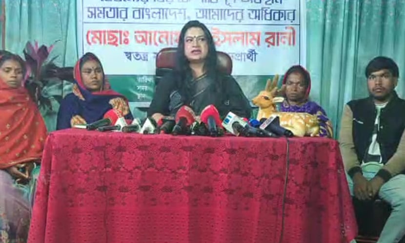 রংপুর: বাংলাদেশের নির্বাচনি ইতিহাসে প্রথম তৃতীয় লিঙ্গের (হিজড়া) প্রার্থী হিসেবে রংপুর-৩ আসনে স্বতন্ত্রভাবে প্রতিদ্বন্দ্বিতা করা আনোয়ারা ইসলাম রানী প্রার্থিতা প্রত্যাহার করেছেন।