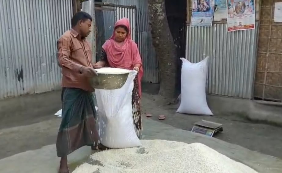 বিক্রির জন্য মুড়ি বস্তায় ভরা হচ্ছে।