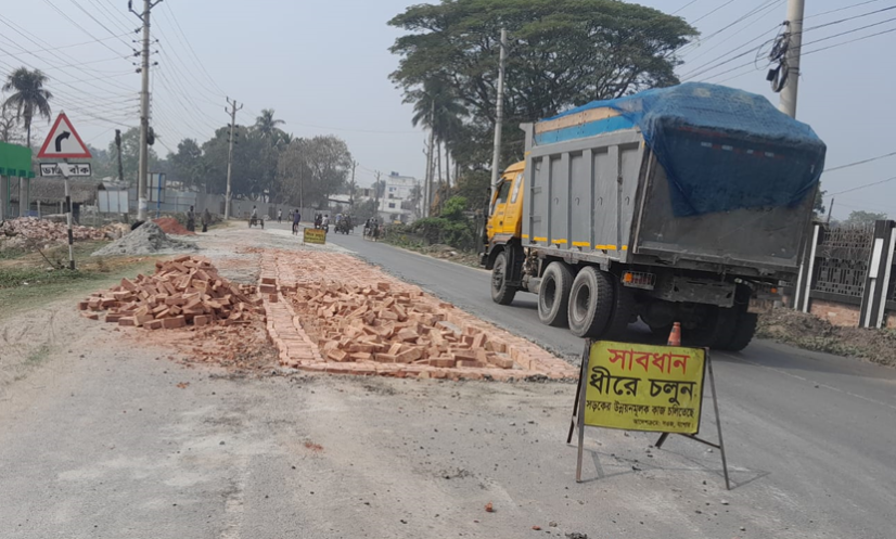 সরেজমিনে আরও ঝুঁকিপূর্ণ অবস্থা দেখা গেছে যশোর-ঝিনাইদহ মহাসড়কে। মহাসড়কটিকে ছয় লেনে উন্নীত করার প্রকল্পের কাজ দীর্ঘদিন বন্ধ থাকায় অনেক স্থানে ইট বিছিয়ে কোনোভাবে যান চলাচলের ব্যবস্থা রাখা হয়েছে। আবার কোথাও ধীরগতির কাজের কারণে সড়কের বড় অংশ বেহাল হয়ে পড়েছে। ফলে প্রতিদিন হাজার হাজার যাত্রী ও পণ্যবাহী যানবাহনের জন্য এই সড়ক কার্যত ঝুঁকিপূর্ণ হয়ে উঠেছে।