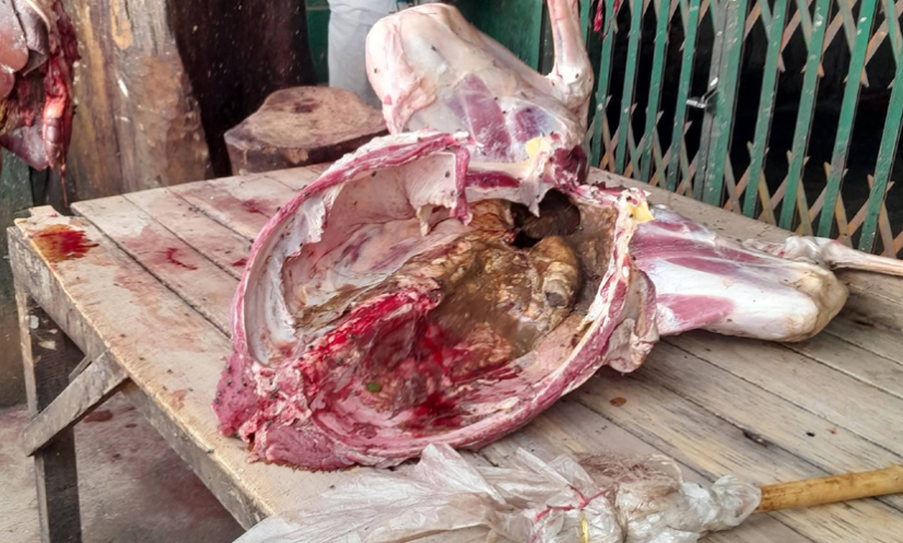 সিলেট: সিলেটের জৈন্তাপুর উপজেলার হরিপুর বাজারে এক মাংস ব্যবসায়ীর দোকানে মরা গরুর মাংস বিক্রির অভিযোগ উঠেছে। খবর পেয়ে উপজেলা প্রশাসন ঘটনাস্থলে উপস্থিত হয়ে ভ্রাম্যমাণ আদালত বসিয়ে মাংসের দোকানটি সিলগালা করে দেয়।