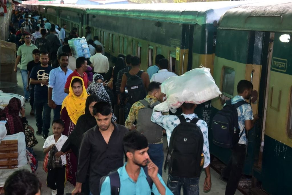 এবারও ‘টিকিট যার, ভ্রমণ তার’ নীতি কঠোরভাবে বাস্তবায়ন করা হচ্ছে। টিকিট যাচাই শেষে যাত্রীদের প্ল্যাটফর্মে প্রবেশের অনুমতি দেওয়া হচ্ছে, ফলে স্টেশনে শৃঙ্খলা বজায় রয়েছে।