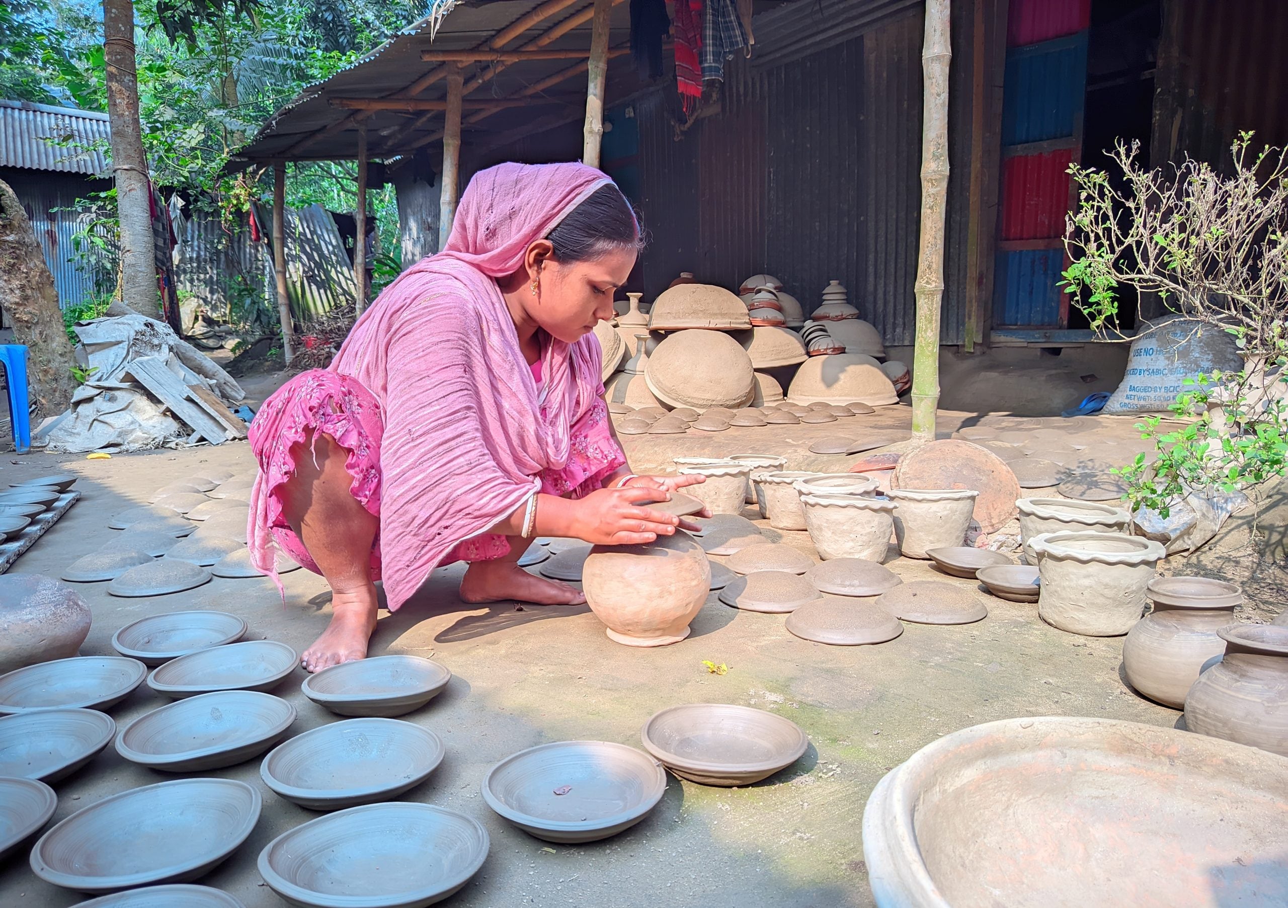 এখানে প্রায় অর্ধ শতাধিক পরিবার কয়েক প্রজন্ম ধরে মাটির পণ্য তৈরি করে আসছে। সম্প্রতি সেখানে গিয়ে দেখা যায়, প্রায় প্রতিটি বাড়ির উঠানে সারি সারি সাজানো রয়েছে বিভিন্ন আকৃতির মাটির পণ্য।