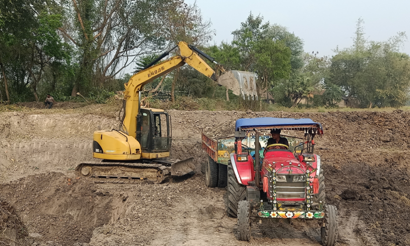 চাঁপাইনবাবগঞ্জ: চাঁপাইনবাবগঞ্জ সদর উপজেলার ঝিলিম ইউনিয়নের হোসেন ড্যাং এলাকায় কৃষি জমি থেকে অবৈধভাবে মাটি কাটার অভিযোগে দুইজনকে গ্রেফতার করা হয়েছে। এসময় মাটি পরিবহনের দায়ে মাটি ভর্তি ২টি ট্রাক্টরসহ ১টি এস্কেভেটর জব্দ করা হয়।