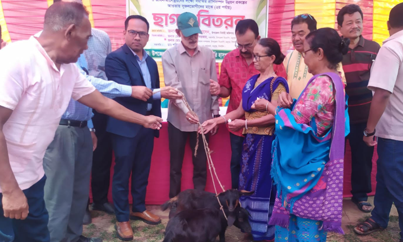 টাঙ্গাইল: টাঙ্গাইলের মধুপুরে সমতল ভূমিতে বসবাস করা অনগ্রসর ক্ষুদ্র নৃগোষ্ঠীর আর্থসামাজিক ও জীবনমান উন্নয়নের লক্ষ্যে সমন্বিত প্রাণীসম্পদ উন্নয়ন প্রকল্পের আওতায় সুফলভোগীদের মাঝে দ্বিতীয় দফায় ছাগল বিতরণ করা হয়েছে।