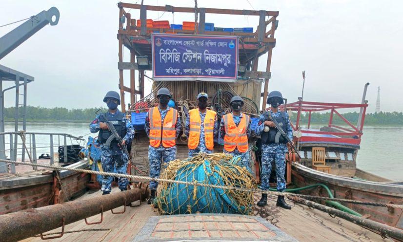 মঙ্গলবার (৭ এপ্রিল) মধ্যরাত দুইটার দিকে কোস্ট গার্ড স্টেশন নিজামপুর গোপন সংবাদের ভিত্তিতে সুগন্ধা মার্কেটসংলগ্ন এলাকায় এ অভিযান পরিচালনা করে। এ সময় প্রায় ৫০ হাজার টাকা মূল্যের একটি অবৈধ বেহুন্দী জাল ও একটি ফিশিং ট্রলার জব্দ করা হয়।