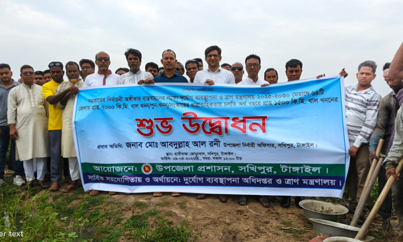 টাঙ্গাইল: প্রধানমন্ত্রী তারেক রহমানের অগ্রাধিকার প্রকল্পের আওতায় টাঙ্গাইলের সখিপুরে খাল খনন কর্মসূচির উদ্বোধন করা হয়েছে।