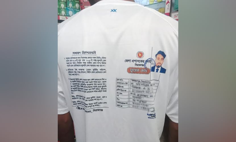 সিরাজগঞ্জ: সিরাজগঞ্জের কামারখন্দে এক ব্যবসায়ী জেলা প্রশাসনের সরবরাহ করা ফুয়েল কার্ড তার নিজ গেঞ্জিতে প্রিন্ট করেছেন, যা এলাকায় আলোচনার সৃষ্টি করেছে।