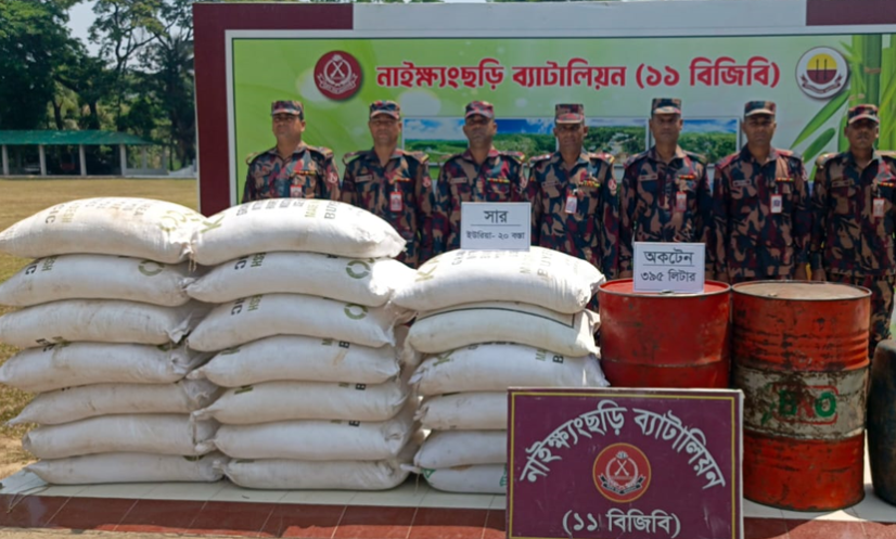 নাইক্ষ্যংছড়ি সীমান্তে ৩৯৫ লিটার অকটেন ও ২৪ বস্তা সার জব্দ