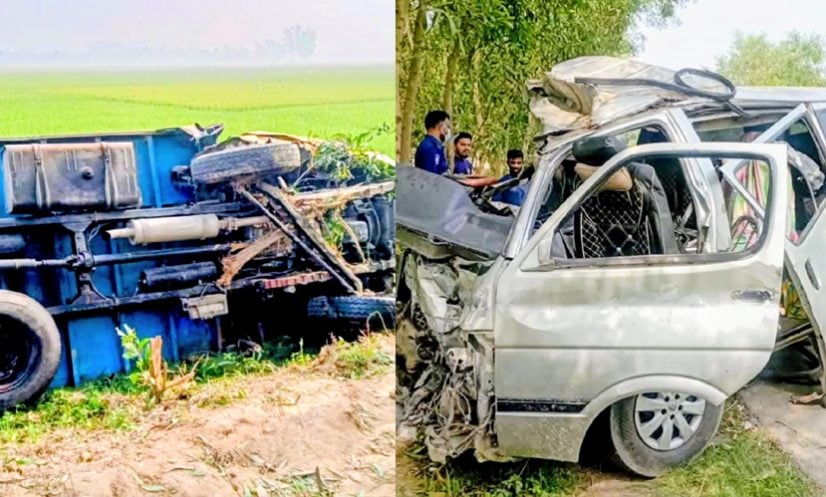 প্রত্যক্ষদর্শী ও পুলিশসূত্রে জানা গেছে, শনিবার (১১ এপ্রিল) সকালে দিনাজপুর-গোবিন্দগঞ্জ মহাসড়ক দিয়ে ১০ জন যাত্রী নিয়ে একটি ভাড়ায় চালিত ‘হাই-এসি’ মাইক্রোবাস ময়মনসিংহ থেকে দিনাজপুরের অভিমুখে যাচ্ছিল। পথিমধ্যে বিপরীত দিক থেকে আসা ঢাকাগামী একটি শশা বোঝাই ট্রাকের ধাক্কায় মাইক্রোবাসটি দুমড়েমুচড়ে যায় এবং ট্রাকটি নিয়ন্ত্রণ হারিয়ে রাস্তার পাশে উলটে পড়ে।