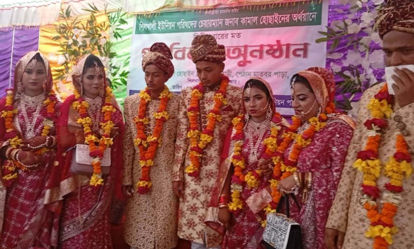 কক্সবাজার: কোলাহলমুক্ত এক উঠান। চারপাশে স্বজনদের ভিড়। মাঝখানে সাজানো মঞ্চ, সেখানে বসে নতুন জীবনের স্বপ্নে বিভোর চার জোড়া যুবক-যুবতী। হাসি, আবেগ আর আশীর্বাদের মিলনমেলায় এমনই এক মানবিক আয়োজনের সাক্ষী হলো কক্সবাজারের পেকুয়া উপজেলার শিলখালী ইউনিয়নের বাসিন্দারা।