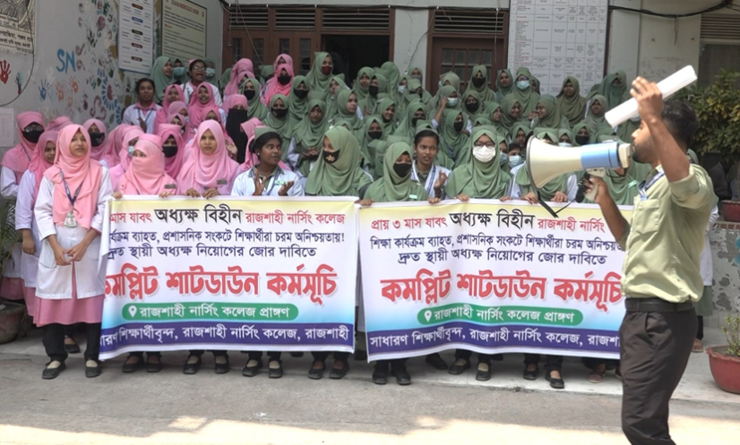 রাজশাহী: অধ্যক্ষ নিয়োগের দাবিতে রাজশাহী নার্সিং কলেজ কমপ্লিট শাটডাউন ঘোষণা করেছেন শিক্ষার্থীরা।