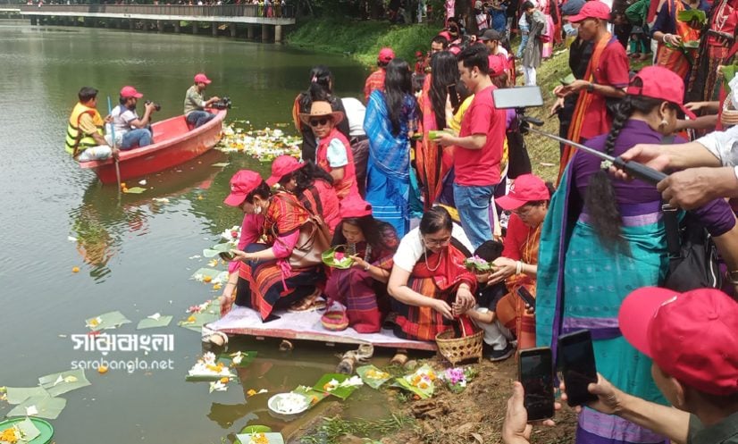 সকাল থেকেই উৎসবপ্রিয় মানুষরা জড়ো হতে থাকেন রমনা পার্কে। পাহাড়ি নারীদের পরনে উজ্জ্বল রঙের পিনন আর হাদি, মাথায় বাহারি ফুলের মালা। উৎসবের শুরুতেই লেকের পানিতে ফুল ভাসিয়ে প্রার্থনা করা হয়।