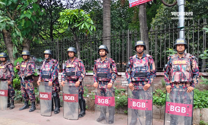 রাজধানীর গুরুত্বপূর্ণ সড়কগুলোয় আইনশৃঙ্খলা রক্ষাবাহিনীর কড়া নিরাপত্তা। ছবি: সারাবাংলা