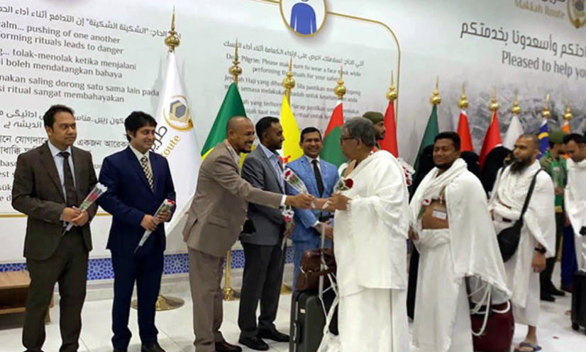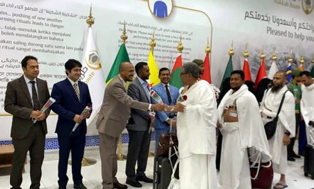সৌদি আরবে নিযুক্ত বাংলাদেশের রাষ্ট্রদূত মো. দেলওয়ার হোসেন ও কাউন্সিলর (হজ) মো. কামরুল ইসলাম বিমানবন্দরে বাংলাদেশি হজযাত্রীদের অভ্যর্থনা জানান। এ সময় হজযাত্রীদের ফুল দিয়ে শুভেচ্ছা জানানো হয় এবং তাদের হাতে রিফ্রেশমেন্ট কিট তুলে দেওয়া হয়।