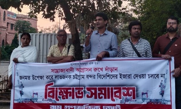 চট্টগ্রাম ব্যুরো: বিদেশি প্রতিষ্ঠানকে ইজারা দেওয়ার সিদ্ধান্ত বাতিলের দাবিতে চট্টগ্রাম বন্দরের সকল প্রবেশমুখে শ্রমিক-কর্মচারী ঐক্য পরিষদের (স্কপ) ডাকা অবরোধ কর্মসূচিতে সমর্থন দিয়েছে বাম গণতান্ত্রিক জোট ও বাংলাদেশ সড়ক পরিবহণ শ্রমিক ফেডারেশন। রোববার (২৩ নভেম্বর) বিকেলে নগরীর পুরাতন রেলস্টেশন চত্বরে বাম গণতান্ত্রিক জোট চট্টগ্রাম জেলার এক সমাবেশ থেকে সর্বস্তরের দেশপ্রেমিক জনতাকে একাত্ম হয়ে অবরোধ কর্মসূচি সফল […]