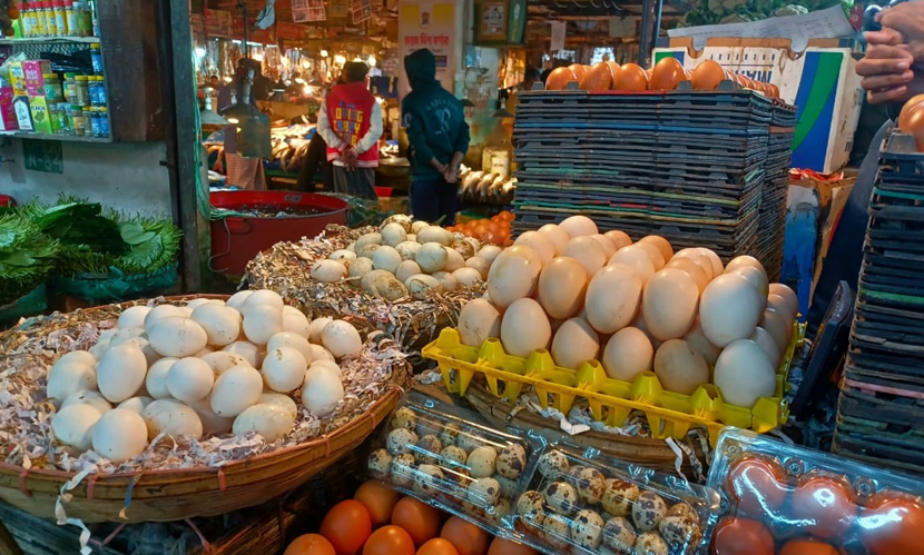 ডিমের দামও স্থিতিশীল আছে একমাসেরও বেশিসময় ধরে। প্রতি ডজন ব্রয়লার মুরগির লাল ডিম ১১০ টাকা, সাদা ডিম ১০০ টাকা, দেশি মুরগির ডিম ১৬০ টাকা, হাঁসের ডিম ১৭০ থেকে ১৮০ টাকায় বিক্রি হচ্ছে। বিভিন্ন প্রকারের মুরগির দামও স্থিতিশীল আছে। ব্রয়লার মুরগি প্রতিকেজি ১৫৫ থেকে ১৬৫ টাকা, আকারভেদে সোনালি মুরগি ২৮০ থেকে ৩০০ টাকা, পাকিস্তানি কক ২৮০ থেকে ৩২০ টাকা, দেশি মোরগ ৭০০ টাকা, দেশি মুরগি ৫০০ থেকে ৫২০ টাকায় বিক্রি হচ্ছে। এছাড়া দেশি হাঁস প্রতিকেজি ৩৫০ টাকা এবং চীনা হাঁস ৭০০ টাকা কেজি দরে বিক্রি হচ্ছে।