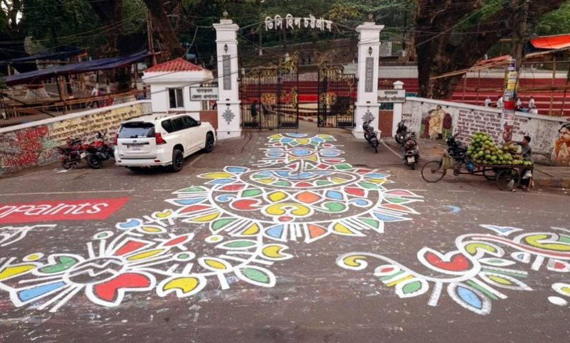 চট্টগ্রামে আলপনায় সেজেছে সড়ক, রঙে-রঙে সম্প্রীতির বার্তা