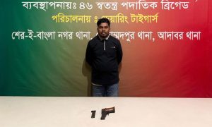 ঢাকা: সুনির্দিষ্ট গোয়েন্দা তথ্যের ভিত্তিতে রাজধানীর মোহাম্মদপুরের রায়েরবাজার এলাকায় অভিযান চালিয়ে একটি বিদেশি পিস্তলসহ এক অস্ত্রধারীকে গ্রেফতার করেছে সেনাবাহিনী। সোমবার (৫ জানুয়ারি) রাতে তাকে গ্রেফতার করে সেনাবাহিনীর একটি দল। মোহাম্মদপুরের […]