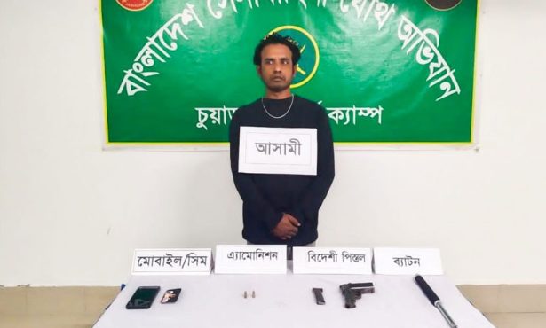 ঢাকা: রাজধানীর মোহাম্মদপুর থানাধীন ওয়েস্ট ধানমন্ডি এলাকা হতে বিদেশি পিস্তলসহ কাউসার হোসেন (২৪) নামের এক যুবককে গ্রেফতার করেছে র্যাব-২।