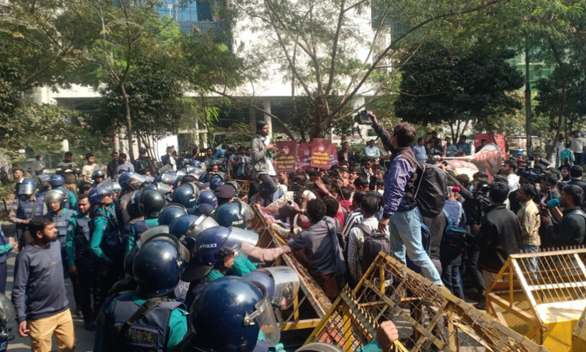 মঙ্গলবার (১৩ জানুয়ারি) দুপুর ১টার দিকে সংগঠনটি একটি মিছিল নিয়ে নির্বাচন কমিশন (ইসি) অভিমুখে যাত্রা শুরু করলে ইসলামিক ফাউন্ডেশনের সামনে পুলিশের বাধার মুখে পড়ে তারা।