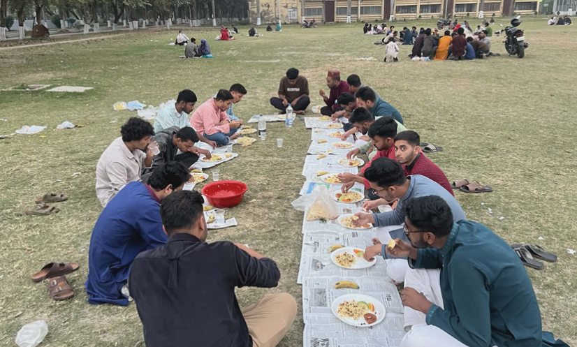 ক্যাম্পাস ঘুরে দেখা যায়, ইফতারের আগমুহূর্তে বন্ধু-বান্ধব ও পরিচিতজনদের সঙ্গে হল থেকে ছোট ছোট দলে ভাগ হয়ে শিক্ষার্থীরা জড়ো হতে থাকে। খেজুর, ফল, ছোলা, পেঁয়াজু, বেগুনি থেকে শুরু করে নানা ঘরোয়া খাবারে ভরে ওঠে প্রতিটি আসর। ধর্ম-বর্ণ নির্বিশেষে সবাই অংশ নেয় এই মিলনমেলায়; ইফতার যেন কেবল খাবারের আয়োজন নয়, বরং সম্প্রীতি, ভ্রাতৃত্ব ও আন্তরিকতার প্রকাশ। সবুজ ঘাসের ওপর গোল হয়ে বসে চলে ইফতারের প্রস্তুতি আর সেই সঙ্গে আড্ডা ও কুশলাদি বিনিময়।