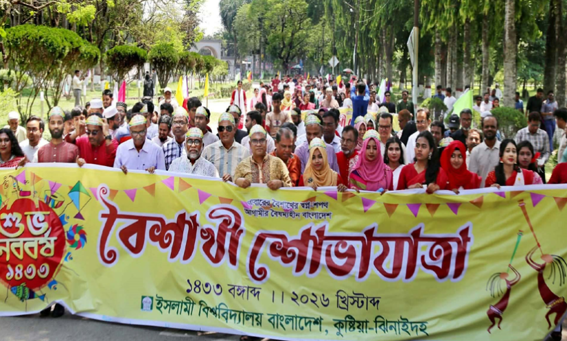 ইবি: ‘এবারের বৈশাখের স্বপ্ন-শপথ/ আগামীর বৈষম্যহীন বাংলাদেশ’ প্রতিপাদ্যকে সামনে রেখে ইসলামী বিশ্ববিদ্যালয়ে (ইবি) বর্ণাঢ্য আয়োজনে বাংলা নববর্ষ-১৪৩৩ উদযাপিত হয়েছে।