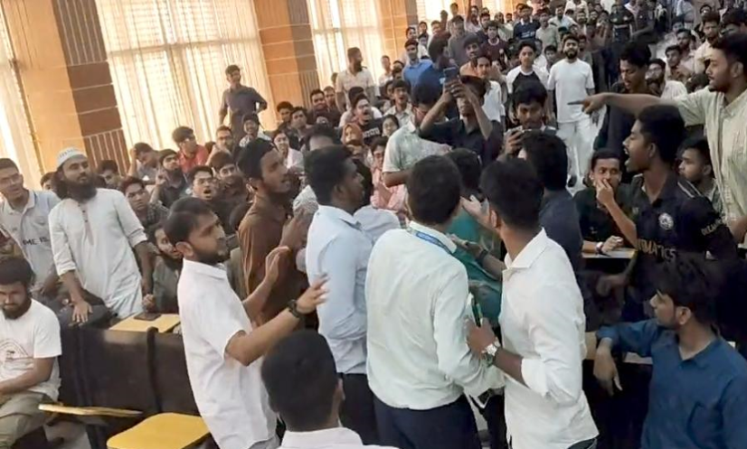 ছাত্রদল সমর্থিত শিক্ষার্থী ও খাদ্য, পুষ্টি বিজ্ঞান বিভাগ মাস্টার্সের শিক্ষার্থী সালেক খান জানান, ‘আমরা রাজনীতি প্রসঙ্গ টেনে আনেনি। শিক্ষার্থীদের দাবির বিষয়ে নানা বক্তব্য দেয়। সেখানে যারা বিগত সময়ে মববাজি করেছে; ঠিক তারাই আজ নতুন ভিসিকে মব সৃষ্টি করে অপমান করেছে। নানা স্লোগানের মধ্যে গ্যালারির দরজা বন্ধ করে আমাদেরসহ নবনিযুক্ত উপাচার্য স্যারকে জিম্মি করে রাখে।
